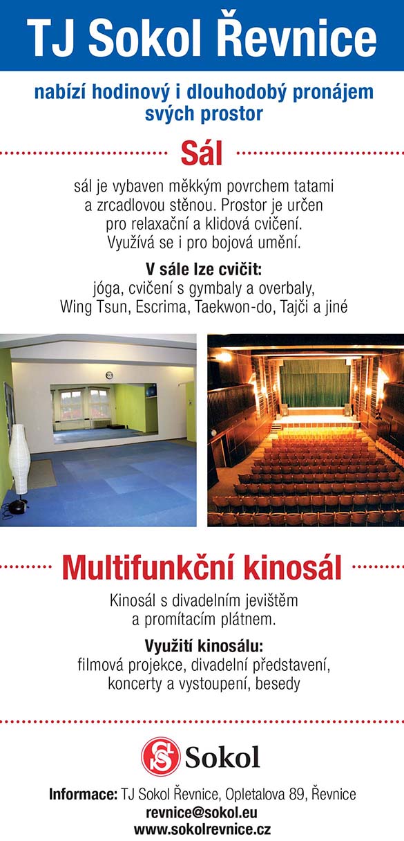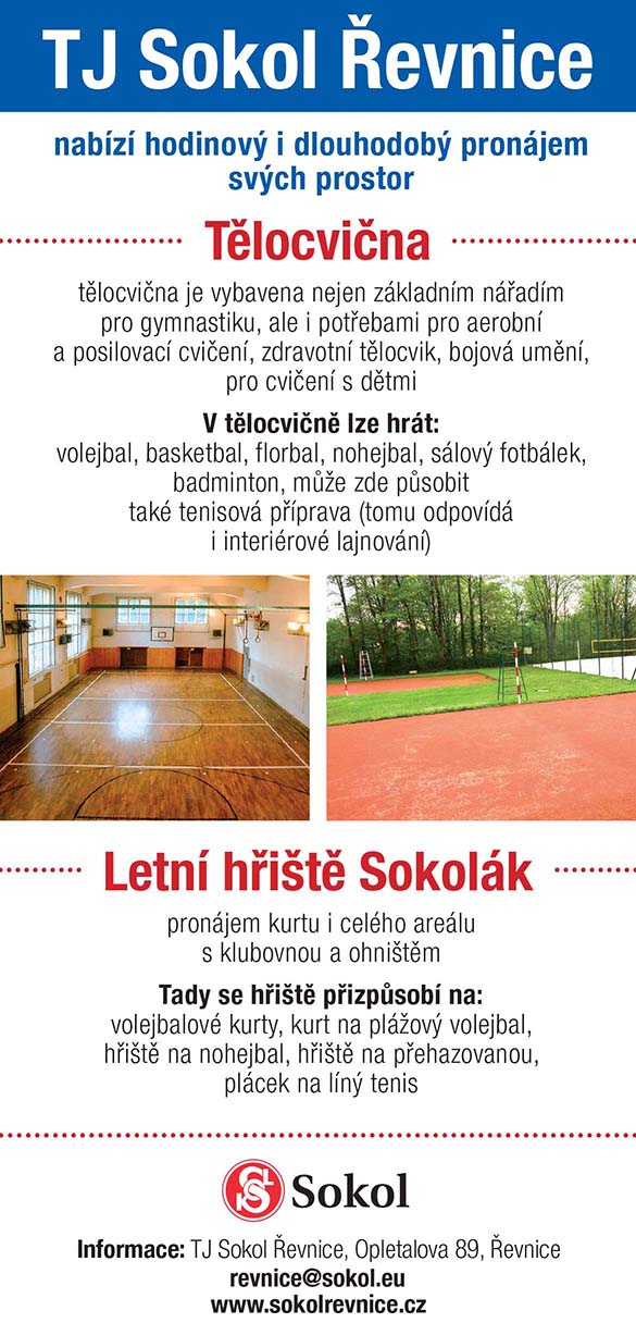 TJ Sokol Řevnice nabízí pronájem (klikněte zde pro detaily)